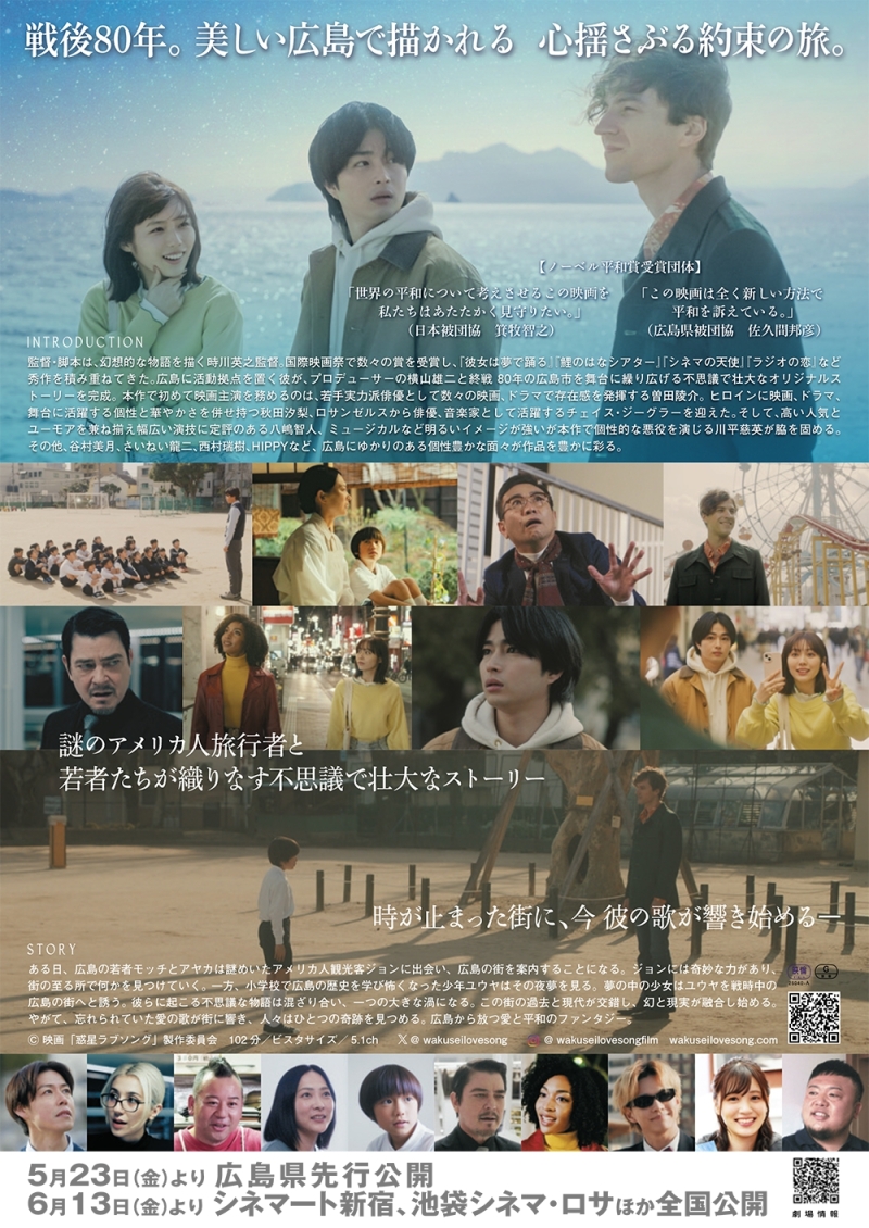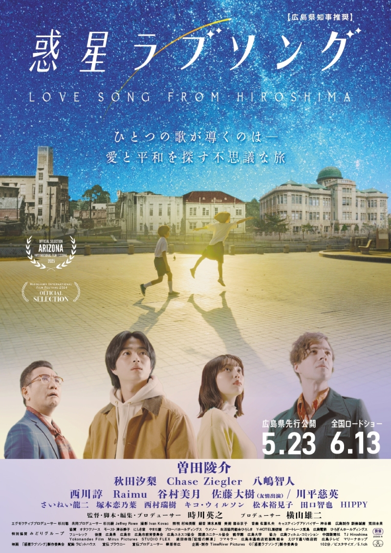 『惑星ラブソング』は、原爆投下から80年の節目に製作された作品で、「ラジオの恋」「彼女は夢で踊る」などで知られる時川英之監督がメガホンを取り、RCCアナウンサーの横山雄二さんもプロデューサーの一人として参加しています。